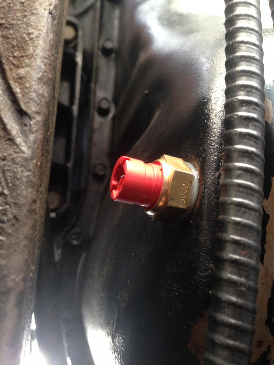Alte Ölablassschraube raus, "neue mit intergr. Sensor" rein, Kabel verlegt angeschlossen, Öl aufgefüllt .....................   HEUL!!  das Gleiche in Grün, die Anzeige schlägt nach 1-3 sec. voll aus.................