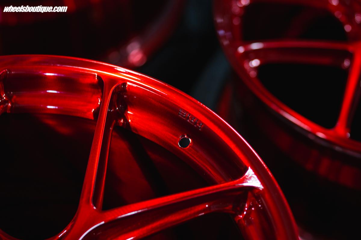 Die Kollegen in USA haben die Felge wieder auf einem Porsche verbaut. Der Turbo S hat die Räder in 20" mit Brushed Red Clear Finish bekommen.