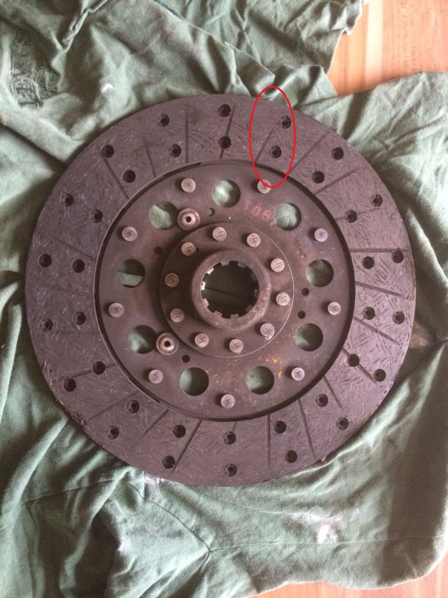 Ich habe dir mal ein Bild meiner alten Mitnehmerscheibe angehängt. Hier kann man sehr schön an den Rillen sehen, daß die Scheibe im äußeren Bereich viel mehr abgenützt ist als im inneren Bereich. Obwohl sie ihre Verschleißgrenze noch nicht erreicht hat, konnte man ohne Durchrutschen der Kupplung nicht mehr fahren.