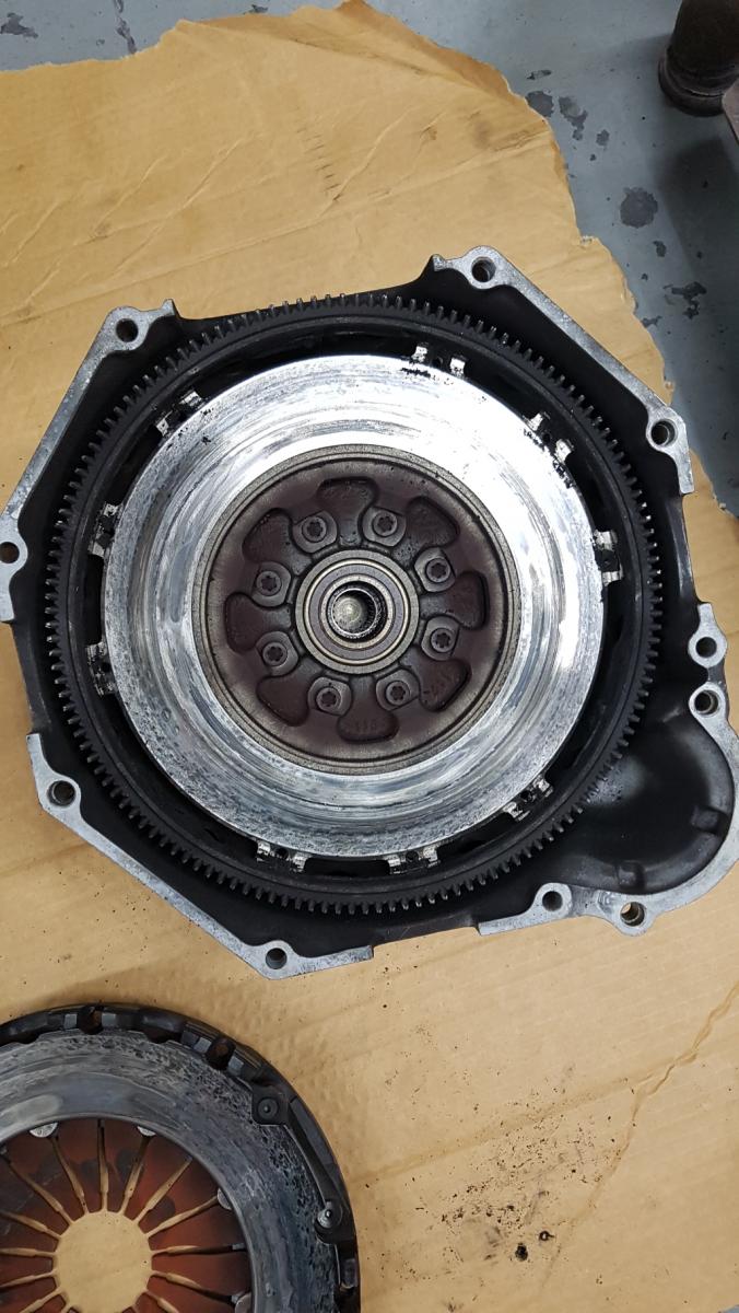 Folgendes habe ich gemacht. Zweimassenschwungrad zerlegt, Schwungscheibe sowie Druckplatte abdrehen und wuchten lassen. Mitnehmerscheibe überholen lassen mit Distanzplatten, welches das weggenommene Material auf beiden Seiten ausgleicht.