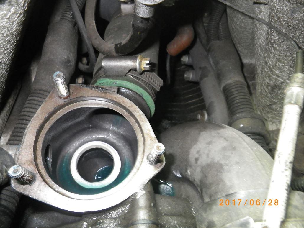 Das Kühlwasser wurde über die Ablassschraube am linken Kühler abgelassen. Dennoch hier abgesaugt, damit die Kurzschlussdichtfläche für den inneren Kreislauf gemessen werden kann: