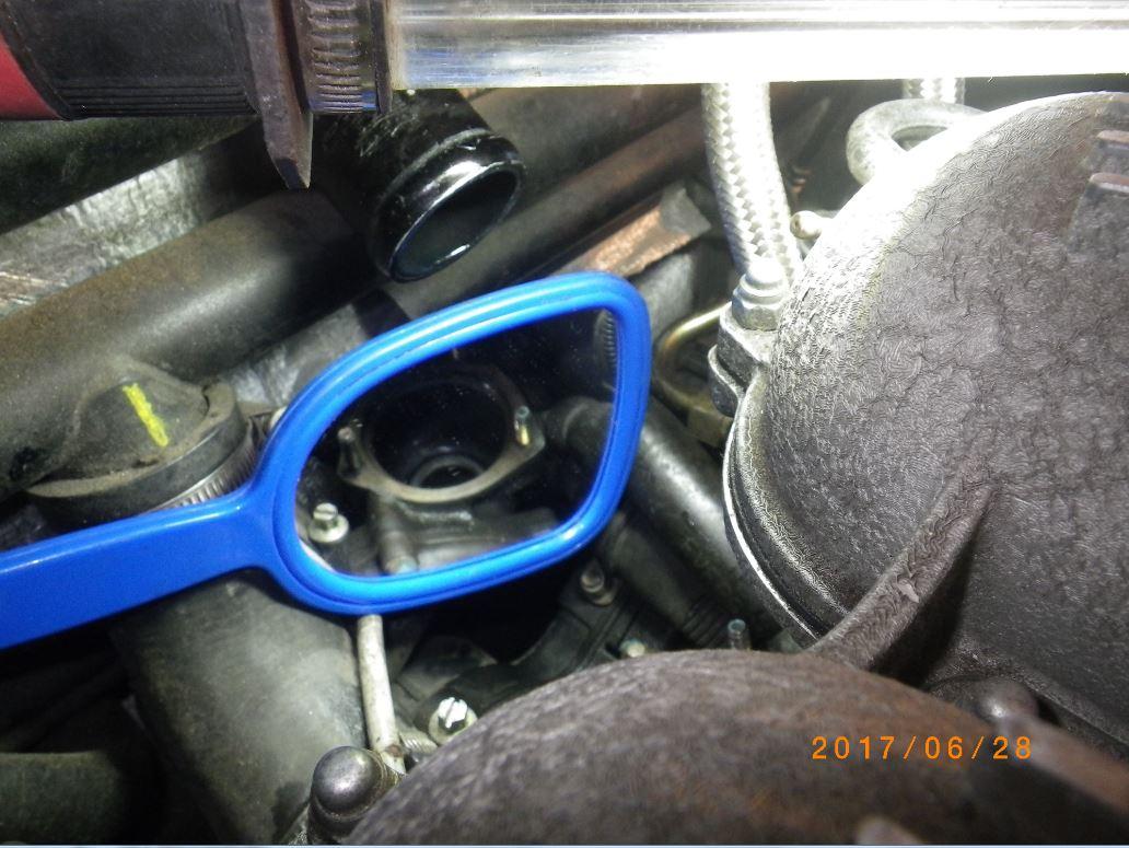An 2 Muttern kommt man gut dran. Die 3. ist problematisch. Alles über Spiegel gearbeitet: