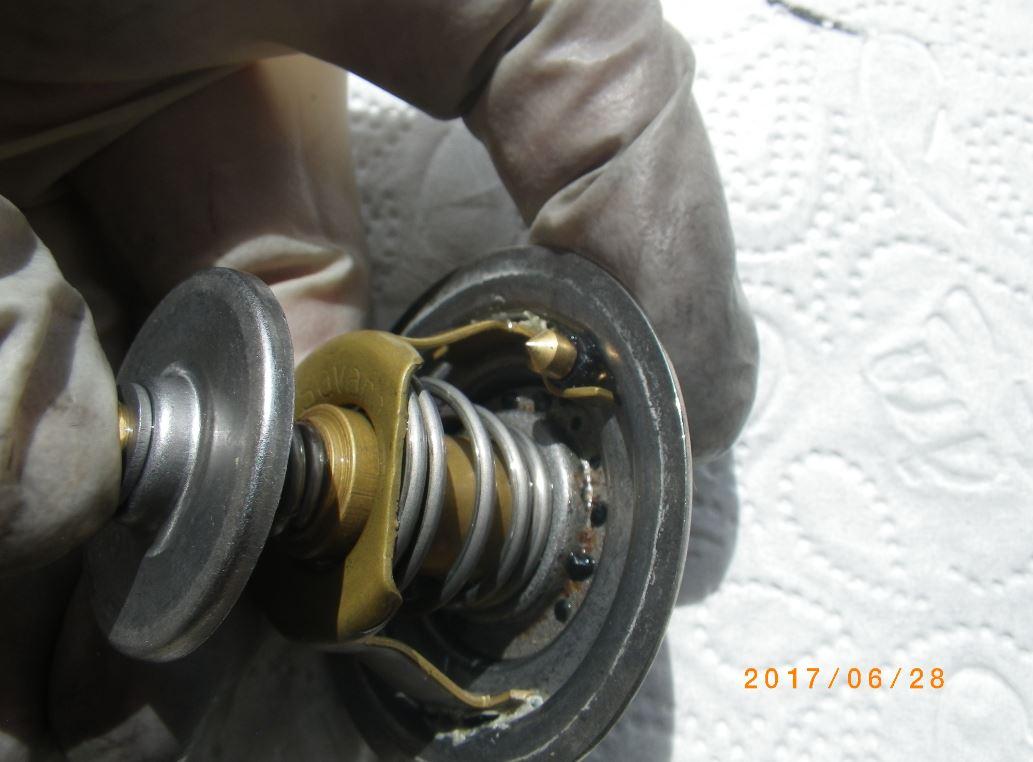 Das könnte zusätzlich ein schlecht oder nicht schließender Kurzschlussteller im Thermostat sein, also der kleine Teller mit D=33. Da sind jetzt ausreichend Gründe zusammen für einen Tausch.