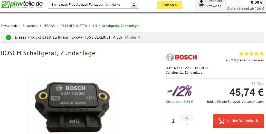 das Zündmodul Bosch 0 227 100 200 ist wohl aktuell nicht lieferbar. Eben hat der 2. Lieferant (Bosch-Niederlassung) das Geld zurücküberwiesen.