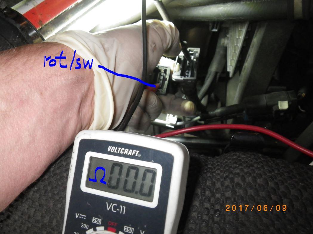 Diesen rot/schwarz zurückverfolgt auf den breiten Stecker des Zündmoduls. Diese Leitung hat keine Unterbrechung: