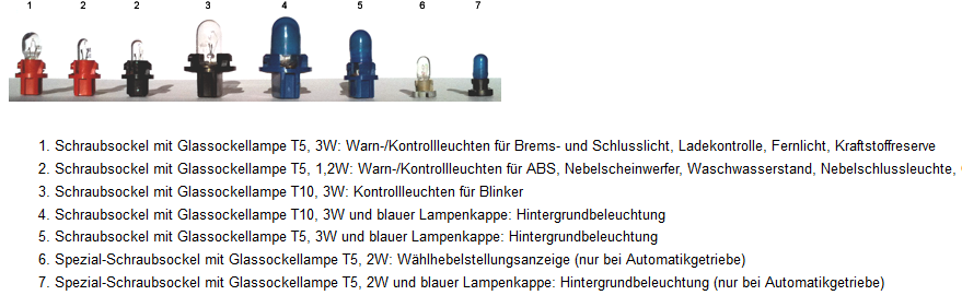 cockpitbeleuchtung ist meist 1,2W wohingegen fehlerleuchten etc. gerne mit etwas helleren 2W bestückt werden da diese ja nicht dauernd leuchten und durch evtl.höhere abwärme ihre umgebung in mitleidenschaft ziehen und auch wegen der besseren auffäligkeit ...zum ausblinken ists schlicht wurst ;)
