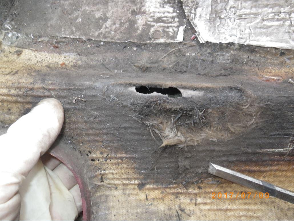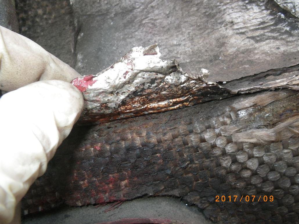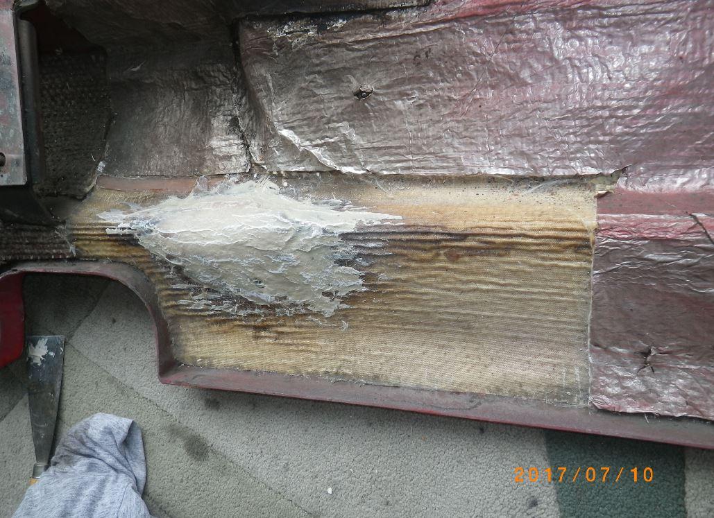 Gereinigt. Testklebung. Dann den Flicken rein:
