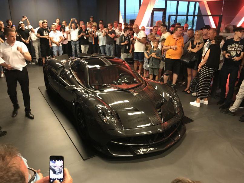 Der Pagani stand im Club Haus und wurde nach dem Abendessen als Überraschung präsentiert. Pagani wird nun als neue Marke der Dörr Gruppe in Stuttgart vertrieben.