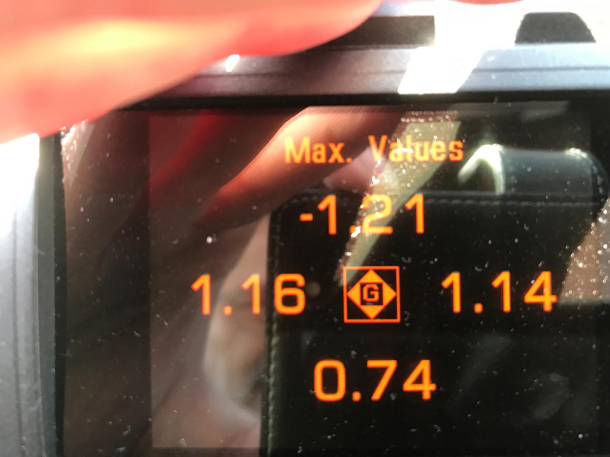Mit dem "neuen" GT3 RS wurde an verschiedenen (langsamen, siehe Kais Beitrag) Stellen auf der Nordschleife ein Wert von 1,55 g gemessen!
