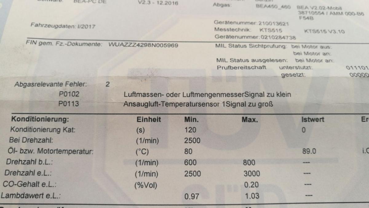 TÜV Fehlermeldung Abgasmessung OBD Hilfe......