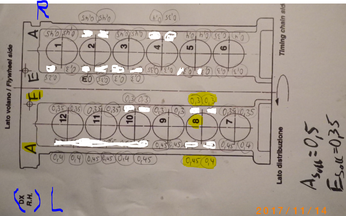 aktuell sind die Ventildeckel runter. Es wird ja hier nach Auffälligkeiten an #8 gesucht. Beim Ventilspiel gibt es bei der #8 keine besonderen Abweichungen: