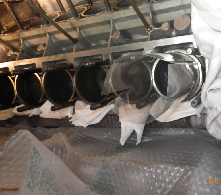 4. Risse am Kopf, Block inkl. Laufbuchsen bisher nicht gefunden, eine fragliche Stelle am Motorblock außen Richtung V muss noch untersucht werden.