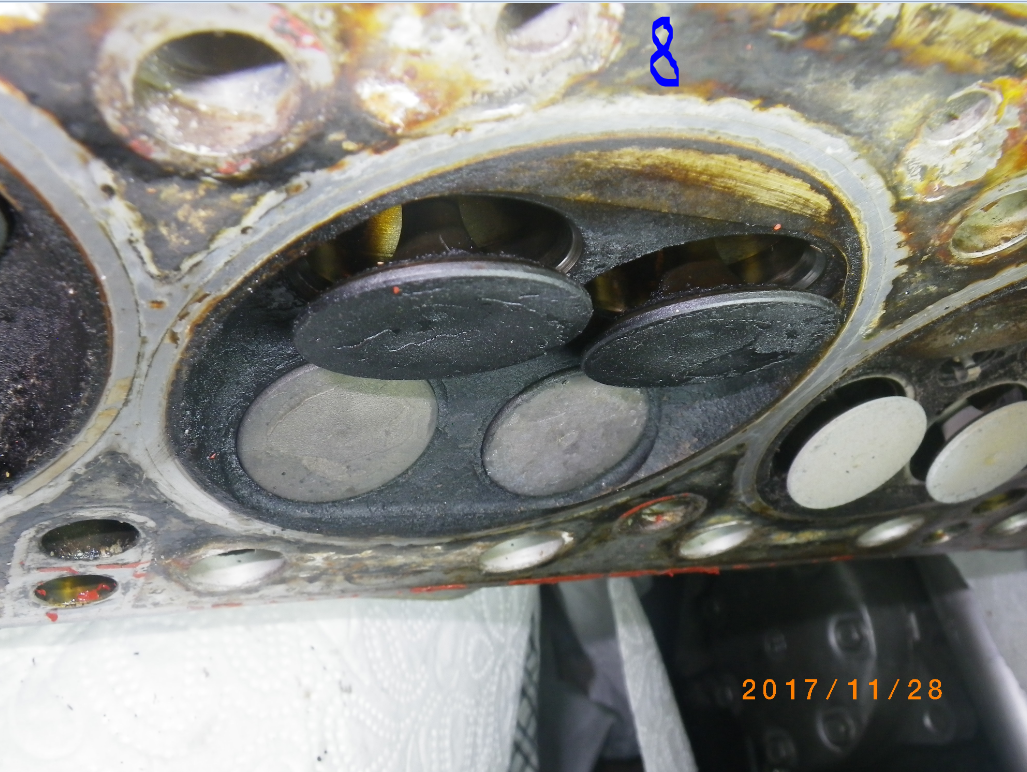 hier erstmal der ungereinigte linke Zylinderkopf mit der #8: