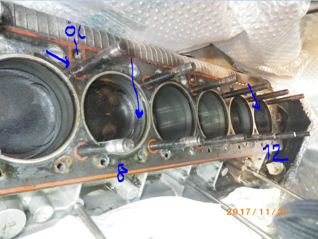 "Da das Problem an der #8 noch nicht klar ist, kann auch der Motorblock betroffen sein (Laufbuchsen mit Riss oder starker Abnutzung,...Kolben, Kolbenringe..."
