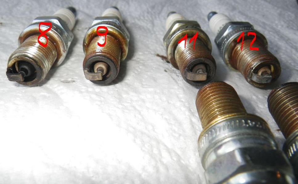 Auch die Zündkerze #12 hatte damals keine Auffälligkeiten am Elektrodenbereich. Das ist eine altes Bild, die Kerze  #12 und #8 wurden gleichzeitig getauscht:
