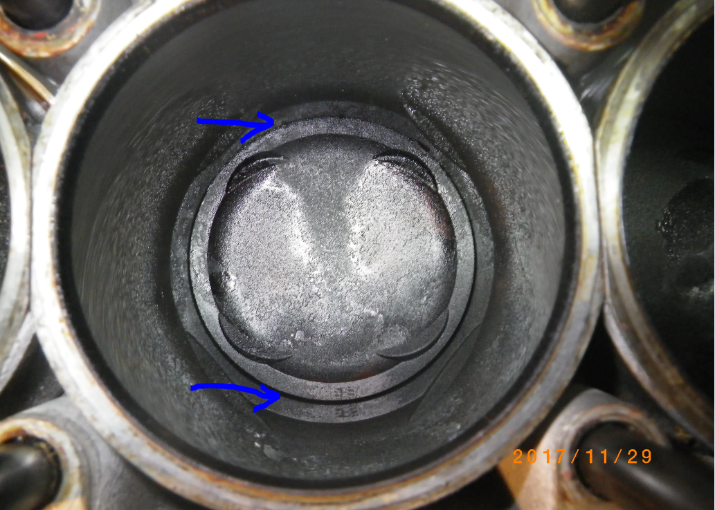 Das in dem Foto unten erkennbare Spaltmaß beim Kippen ist m.E. erstaunlich, zumal es im OT nochmals höher sein dürfte. Allerdings beschränkt sich meine Erfahrung auf alte Bauformen, möglicherweise ist dies bei halbwegsmodernen Kolben anders, auch unter Berücksichtigung der thermischen Ausdehnung des Kolbens im Betrieb.