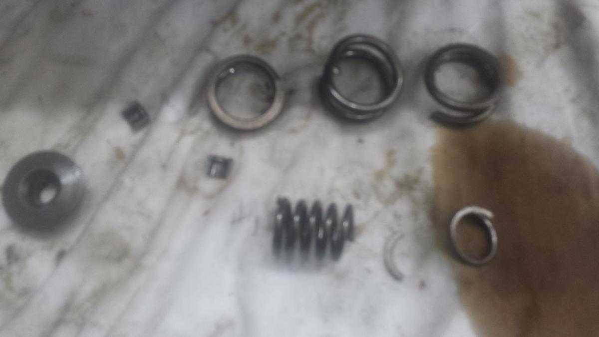 Die Ventilfeder von einem (der drei ) Einlassventilen war gebrochen und hat ein Einlassventil ein wenig offen stehen lassen. Das ganze muß wohl schon vor längerer Zeit passiert sein. Die sporadischen Aussetzer vorher lassen sich eigendlich nur so erklären , dass die äußere , gebrochene , Ventilfeder durch die Innere , intakte , geführt wurde , sich aber scheinbar zwischendurch verdreht hat und damit das Ventil nicht hat schließen lassen.