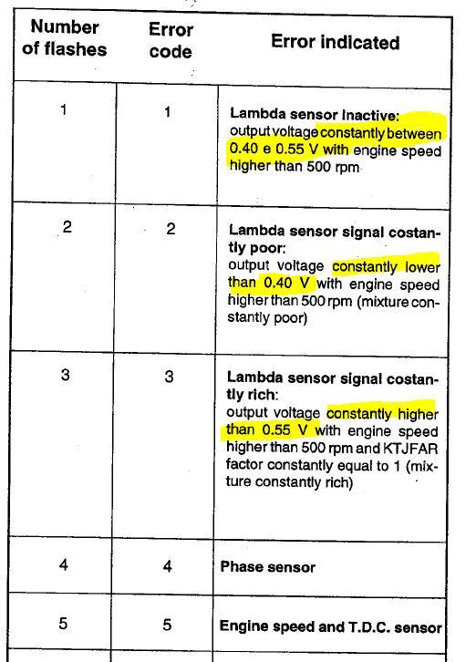 boah...das ist ja extrem rudimentär...da hat ja selbst ein mitte der 80er vw mit blinkcode(4 stellig) schon deutlich mehr an infos die ausgeblinkt werden können..in der regel,was sensorenetc.angeht mit unterscheidung ob unterbrechung,kurzschluss nach masse oder plus,werte über-oder unterschritten etc.....