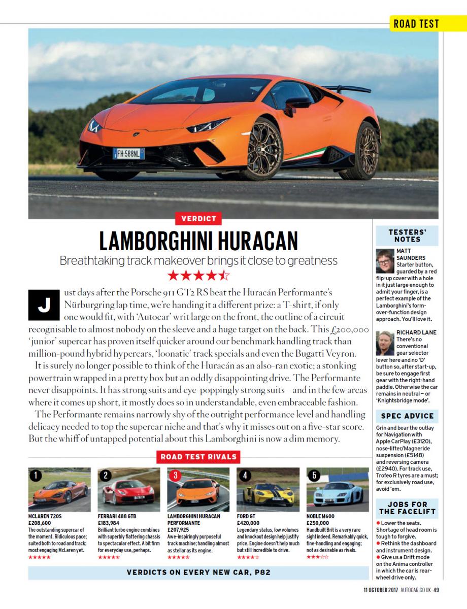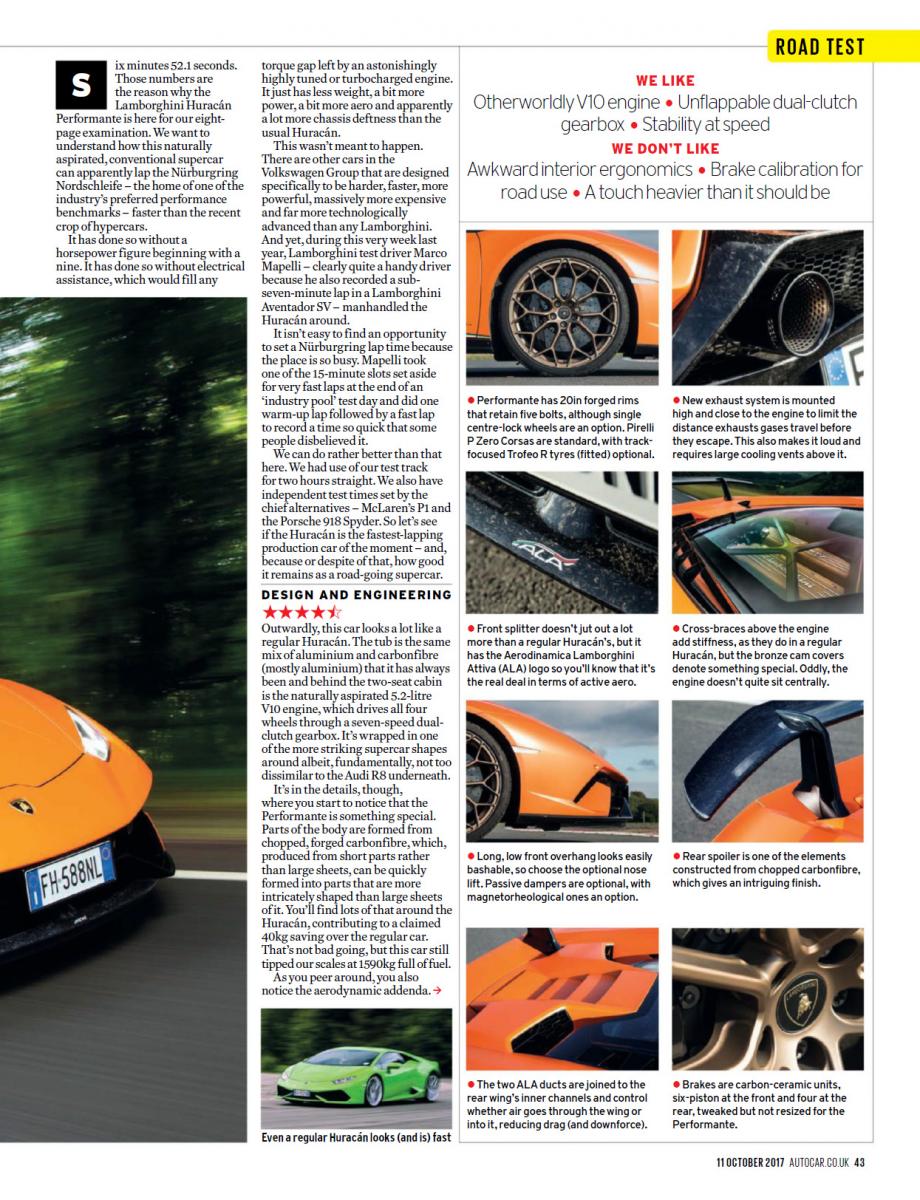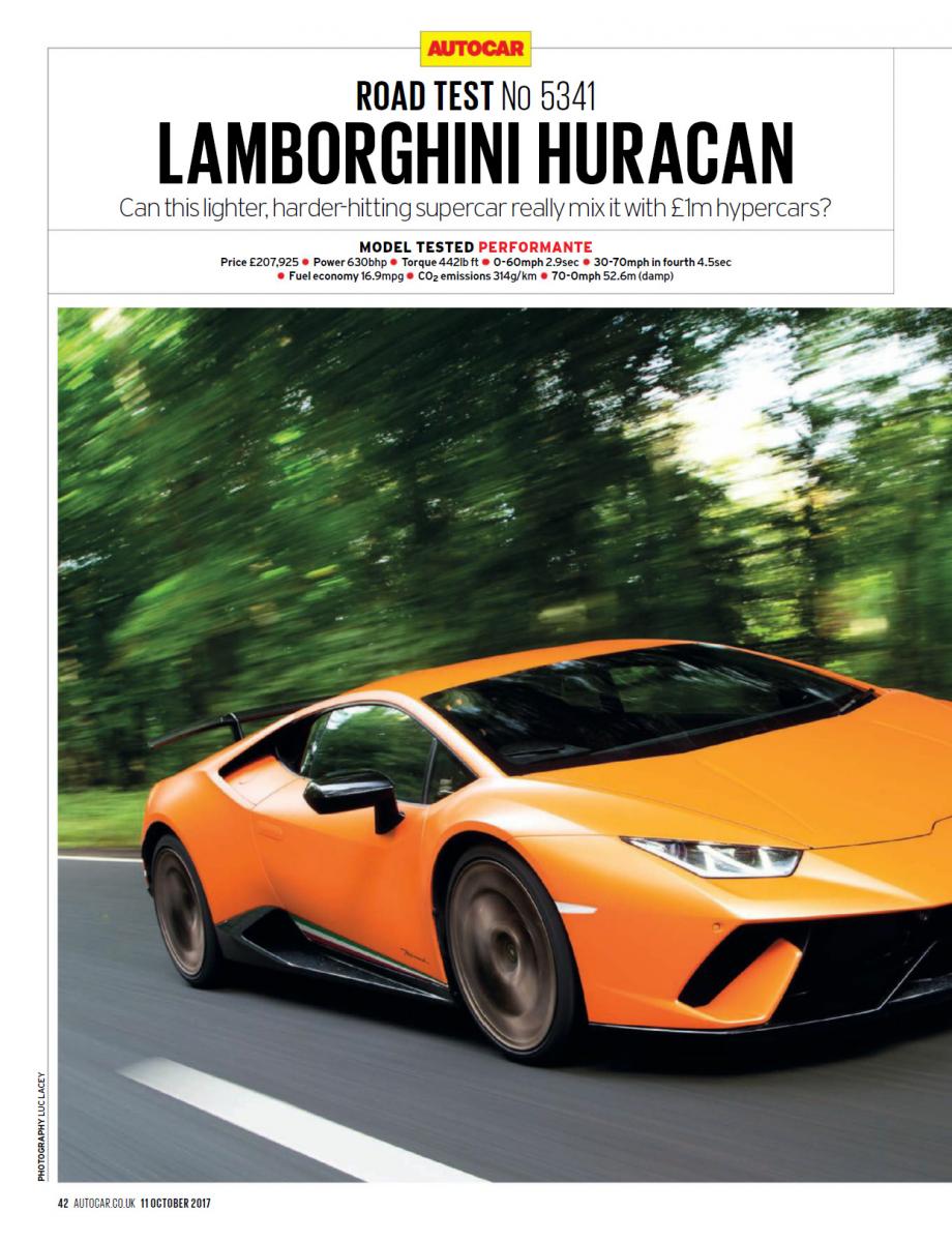 • Lamborghini Huracán Performante: 1min 05.30secs