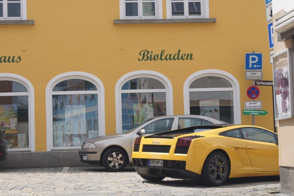 Mittags dann mit unseren ökologisch wertvollen Automobilen beim Bioladen. Stinkediesel war ja keiner dabei...
