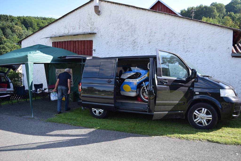 Das Dienstfahrzeug meines Fahrers ist aus erster Hand, nachlackierungs- und unfallfrei mit originaler Rennhistorie des Fahrers: eine Suzuki RG-500 MK-I, der erste von Suzuki in Deutschland ausgelieferte production racer dieses Fabrikats.