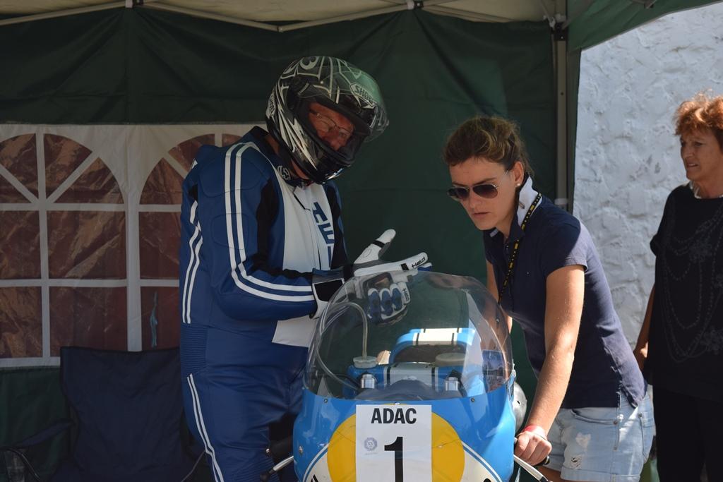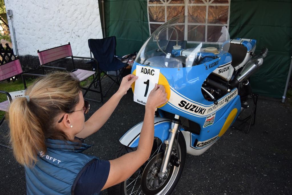 Aufgrund der Rennerfolge wurde seitens des Veranstalters an den Fahrer Startnummer 1 vergeben. Natürlich bringt der Teamchef die Startnummer liebevoll an.