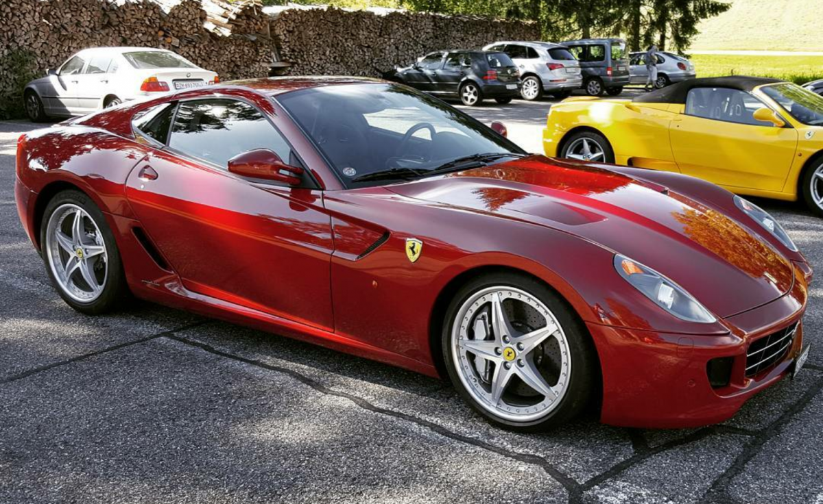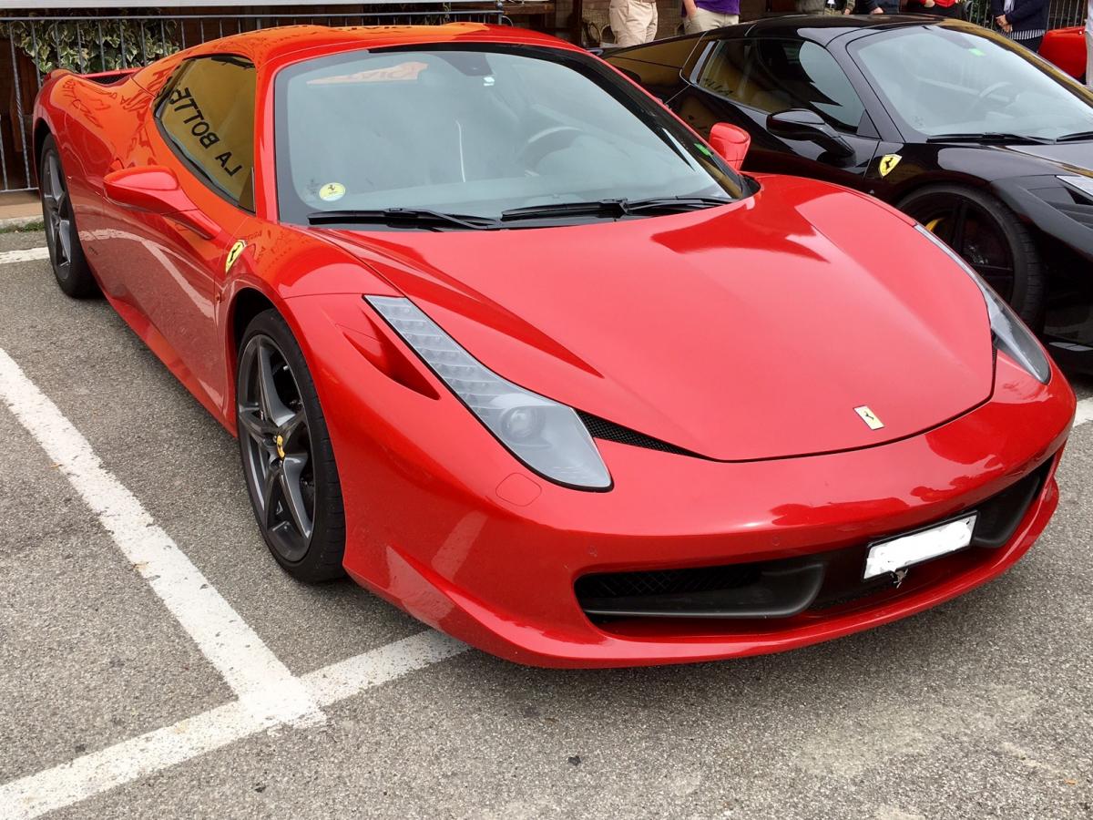 Hier ein Bild von einer ausfahrt, ich finde hier sieht man schön den Unterschied zwischen Rosso Scuderia das vordere Auto und Rosso Corsa hinten.
