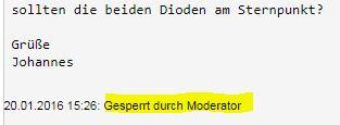 Ich überlege gerade, ob nicht der Regler dekontaktiert werden sollte, noch ohne Ergebnis. Wenn er nur gesteckt/geschraubt ist, würde ich nicht weiter überlegen und ihn einfach vor den Diodenmessungen abmachen.
