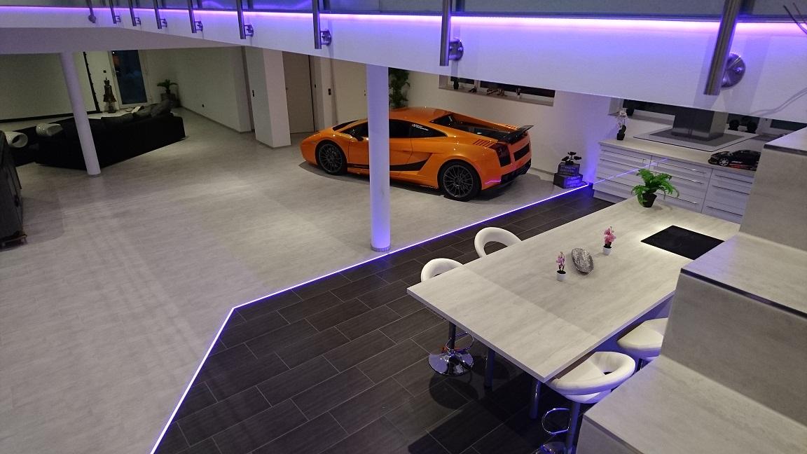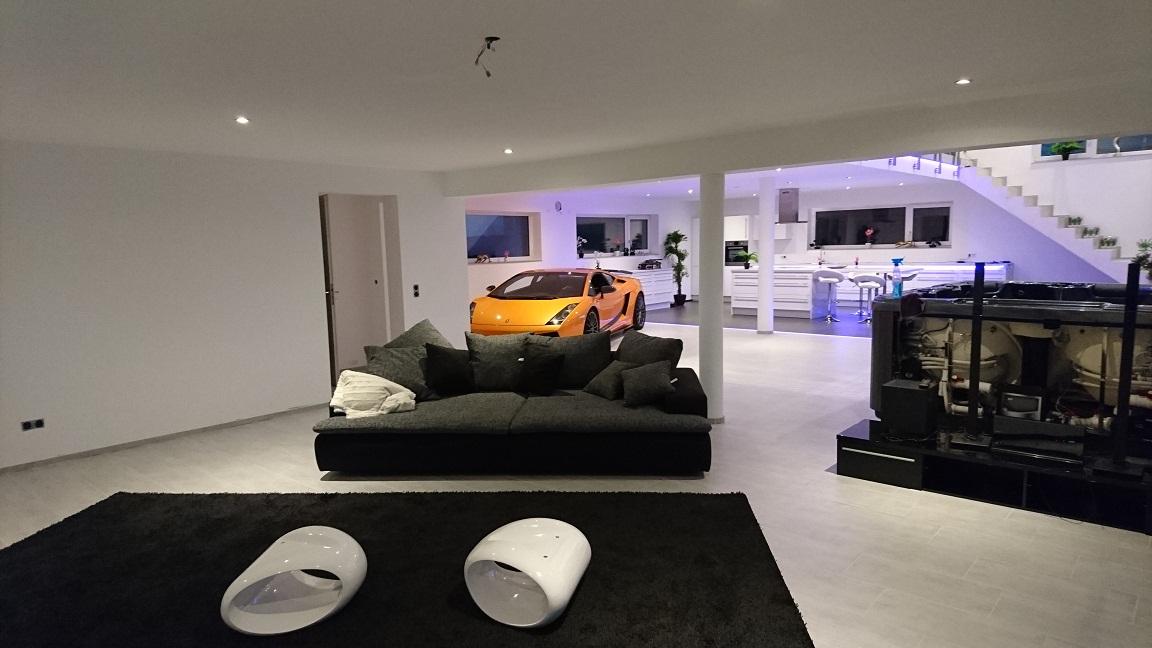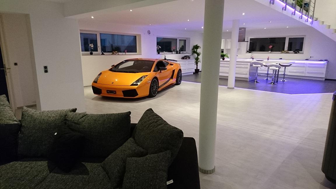 Hoffentlich hast du ich gut beraten lassen und dir eine leistungsfähige entfeuchtungsanlage einbauen lassen denn sonst wird aus deinem Ferienhaus eine Tropfsteinhöhle dank Whirlpool. Ansonsten, Respekt es stimmt also doch dass es Leute gibt, die sich ihren Sportwagen ins Wohnzimmer stellen. Ich persönlich würde da eher eine wohngarage bauen. Mag den Gummigeruch nicht und wer weiß was da nach einer Ausfahrt für Zeugs unten dranhängst und dann im Wohnzimmer abfällt.