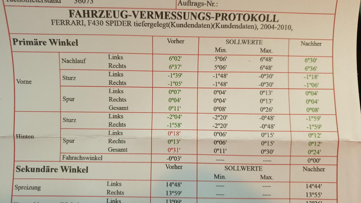 Leute es ist geschafft. Gerade beim TÜV fertig. Die 458 Felgen sind eingetragen. Verschränkungstest auch bestanden! Meine Variante ist also die absolut perfekte Kombination, wenn ihr 458 Felgen auf dem 430 fahren wollt, legal und optisch perfekt. Vorne müssen es 20er Adapter sein und hinten 34er Adapter. Bei Fragen gerne PN. :-))!