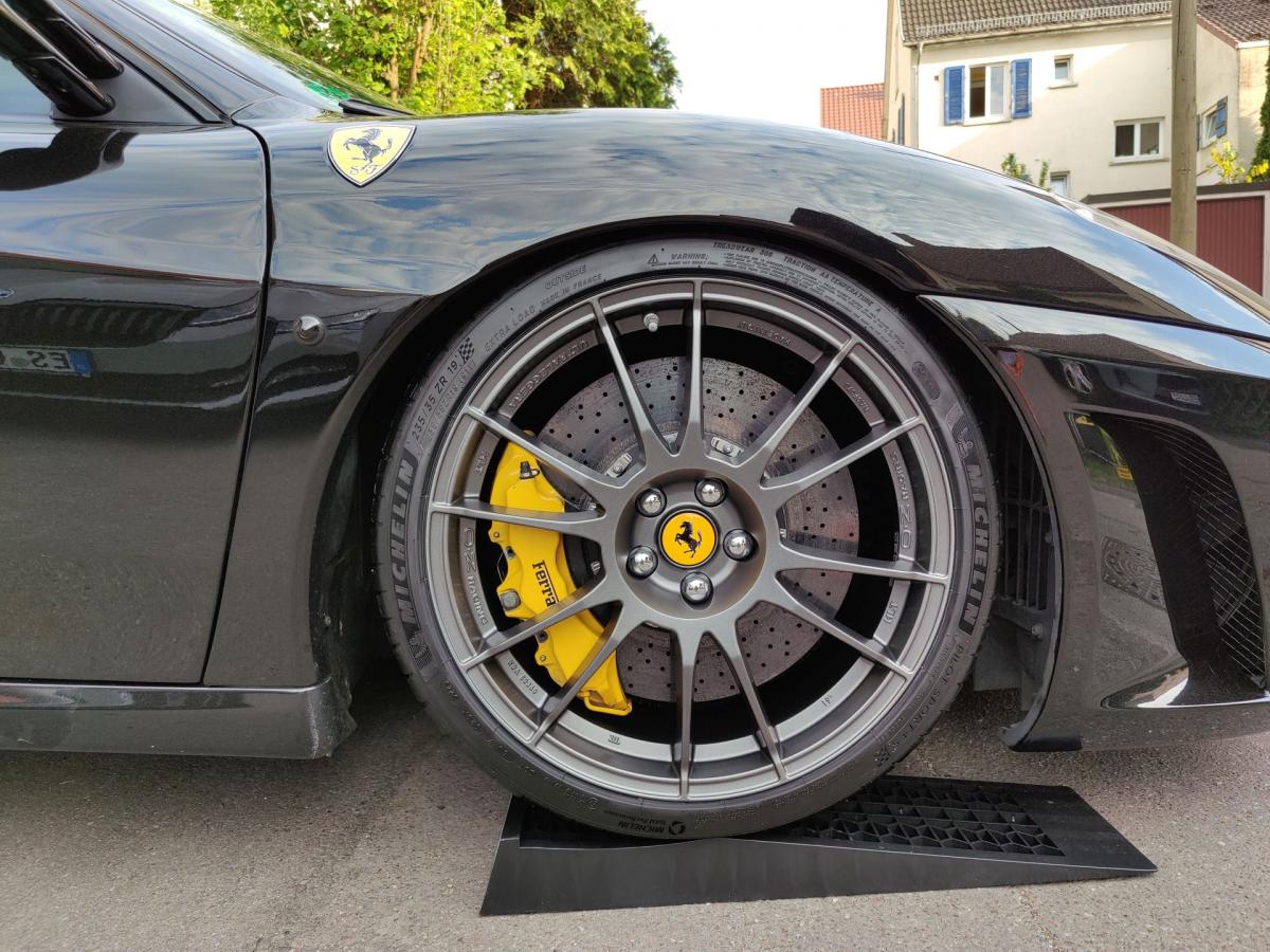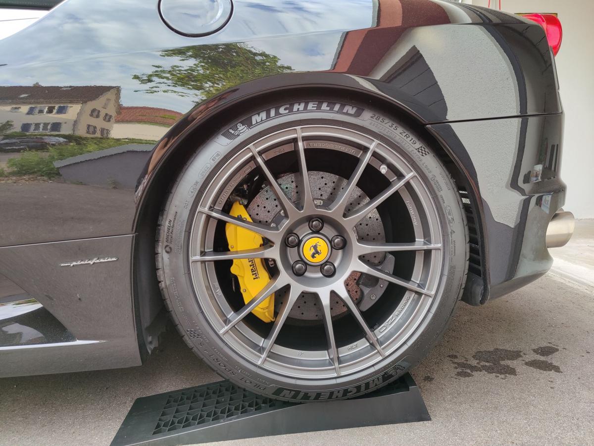 OZ Ultraleggera HLT in 8,5x19 ET27 und 11x19 ET35 mit Michelin Pilot Sport 4S in 235/35/19 und 285/35/19 (Scuderia Dimension). Gewichtsersparnis 6 kg gegenüber Serienräder und in etwas auch gegenüber Scuderia Räder. Fahrwerk auf Scuderia Werte eingestellt. Kommen aber in Kürze noch die H&R Federn rein, welche progressiv gewickelt sind und das Auto nicht mehr so weich machen. Es wird dann nicht mehr durchschlagen bei sehr zügiger Fahrt und angemessener Tieferlegung. Werde berichten!