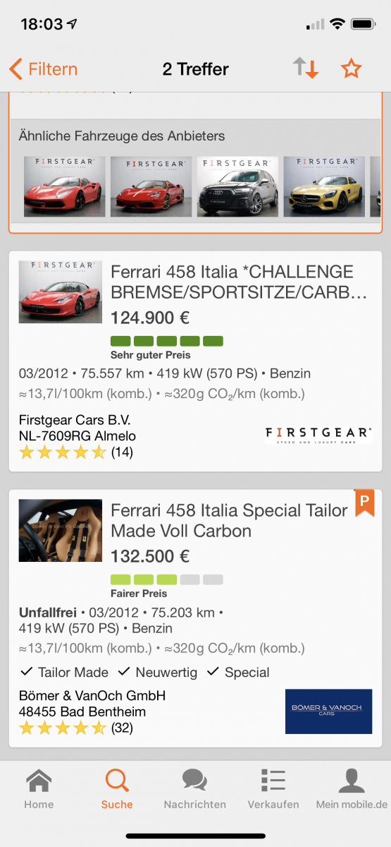 Hallo Kai, ist dass das identische Auto? Die KM unterscheiden sich geringfügig. Oder ist das die Distanz zwischen den beiden Händlern?