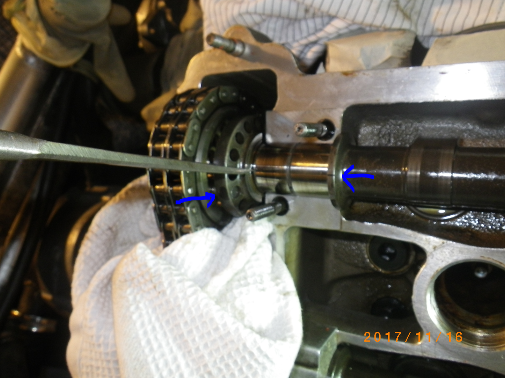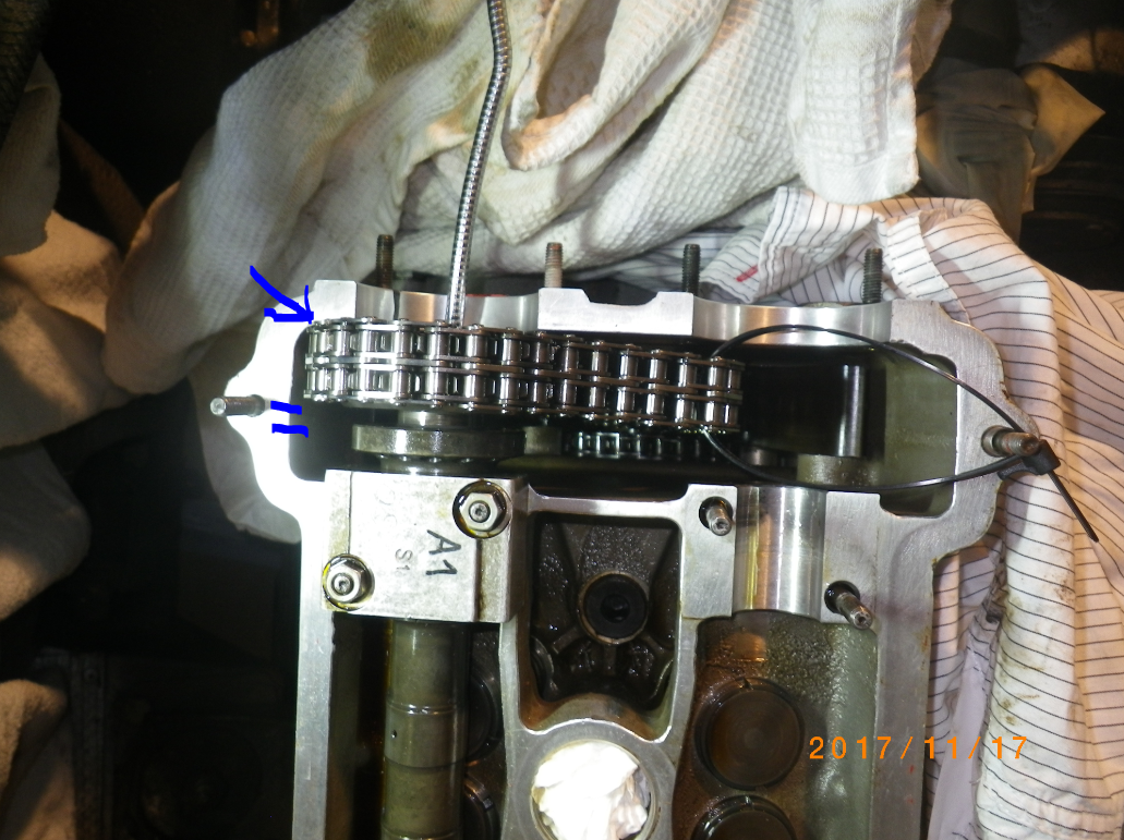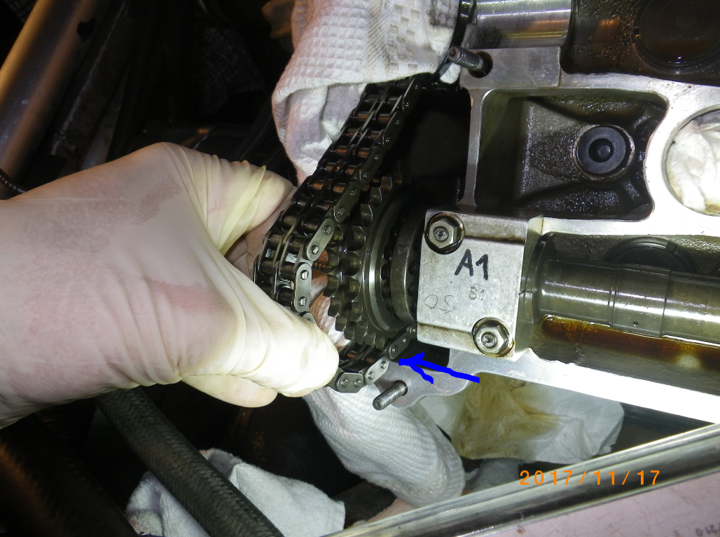 Das ist also fast eine axiale Nullnummer. Evtl. reicht es, wenn man mit der Auslassnockenwelle beginnnt, dann Kette an der Einlassnockenwelle versetzten. Und der eine Millimeter zusätzlich kann dann reichen.