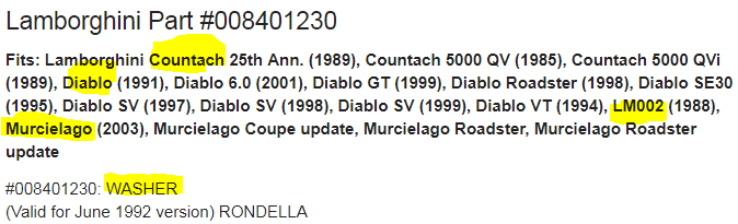 So konnte bisher alles irgendwie identifiziert werden (Ausnahme Stabibaugruppe Vorderachse) typischerweise über die Ersatzteilkataloge vom Diablo 1991 oder Diablo VT 94. Das geht über die Listen v.a. Eurospares, scuderiacarparts, Bullstuff.