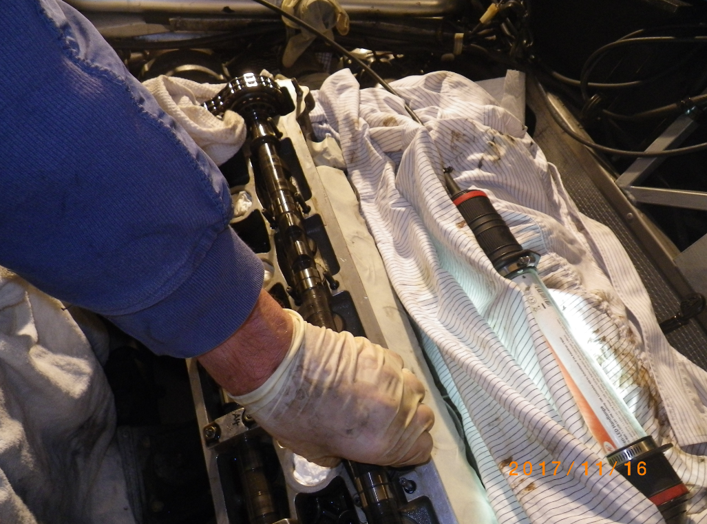 Den Stift für die Feineinstellung der Steuerzeit befreit. Aber auch immer wieder mal zurück gesteckt im Folgenden, damit keine schlagartige Bewegung reinkommt: