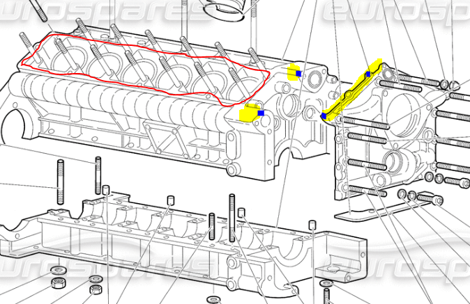 Viele Zylinderkopfdichtungen werden trocken aufgelegt und fertig. Im Falle vom Diablo ist fest eingeplant, im Bereich der Trennfläche zum Stirndeckel Dichtmasse zu verwenden. Hier treffen sich 3 Bauteile an den blauen Stellen: