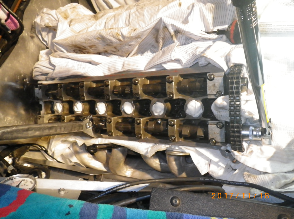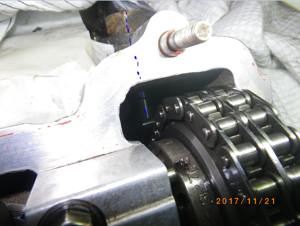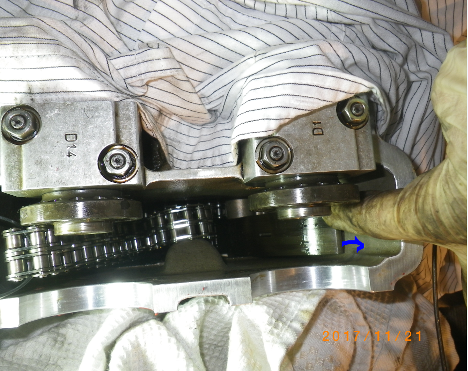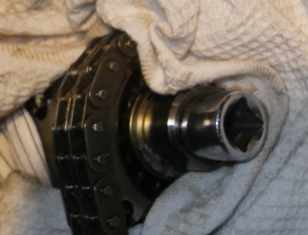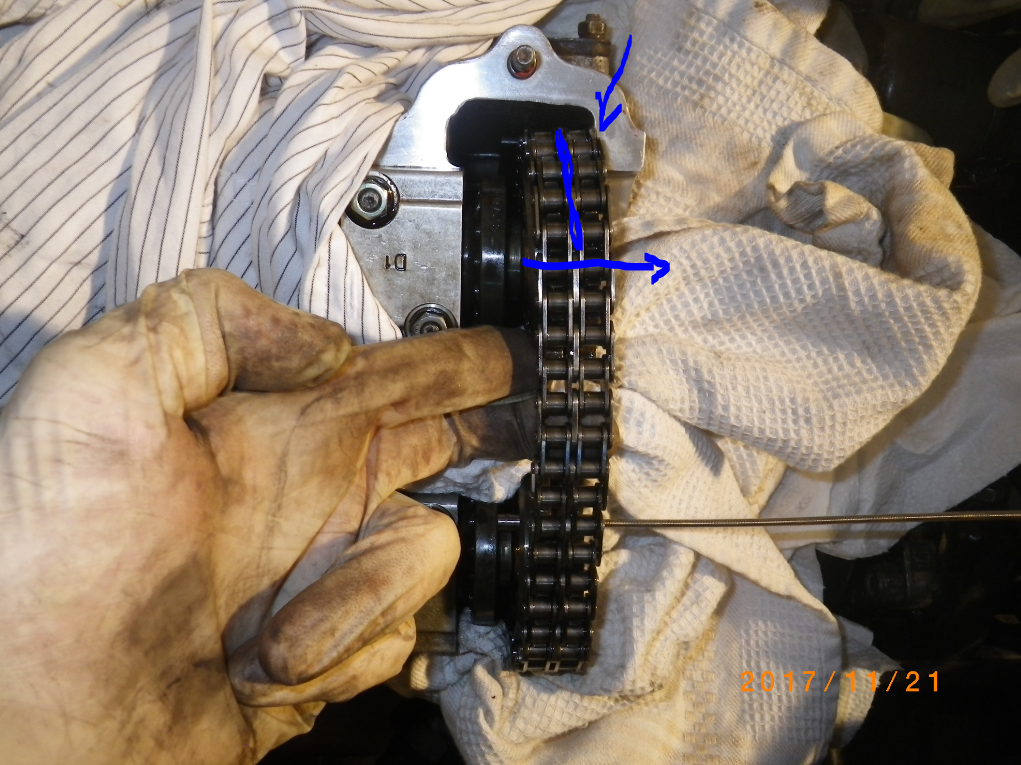ein paar Bilder von der Kettenbefreiung linke Bank. Grund für das verzögerte Abnehmen war der Kettenspanner. Habe also nochmals überall an der Kette gerüttelt, also auch in Höhe Kettenspanner und auf der anderen Seite gezogen. Nicht nur gedrückt. Es ist überall stramm.