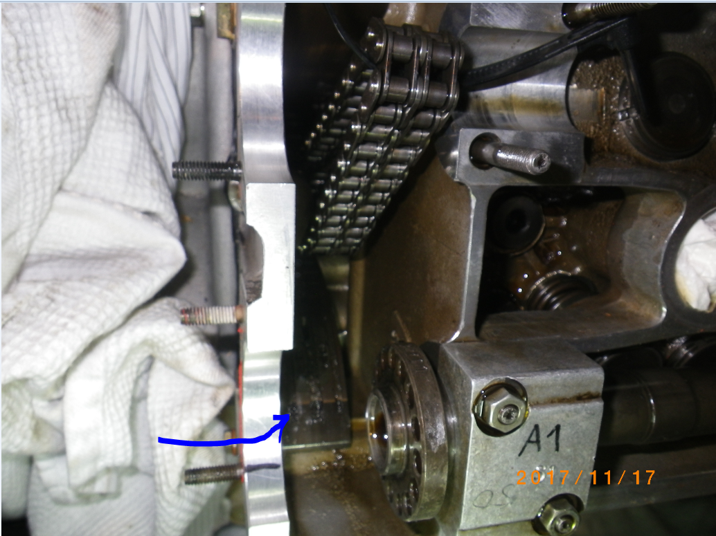 Die äußere Gleitschiene auf der Kettenspannerseite nicht: