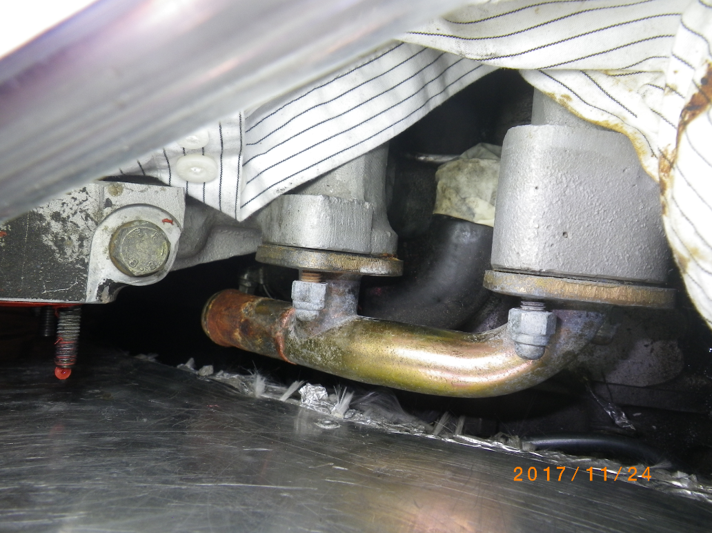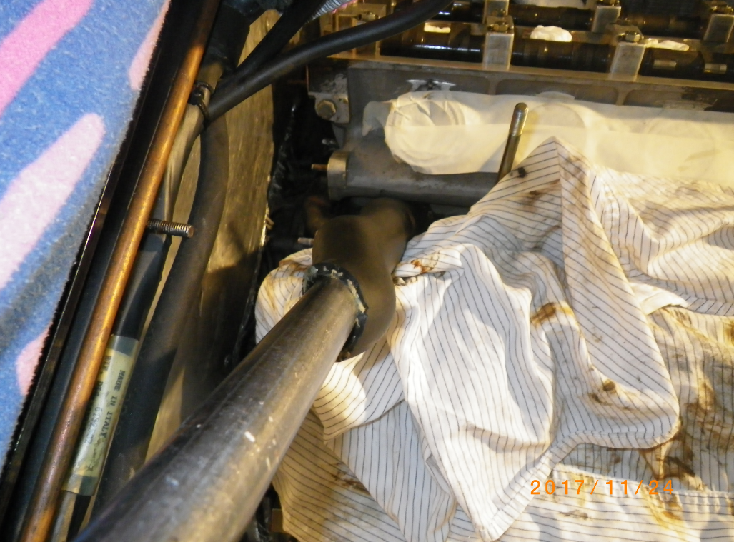 Der Abzweig verbindet auch die beiden Zylinderköpfe. Muttern wieder mal alle gut zugänglich außer einer: