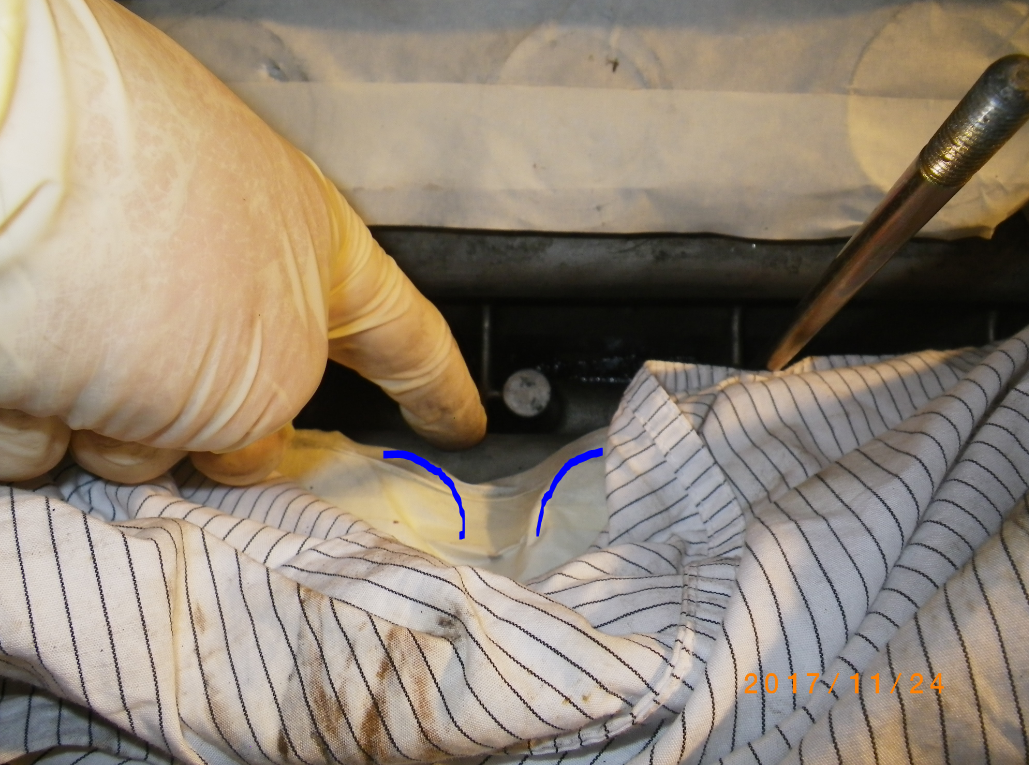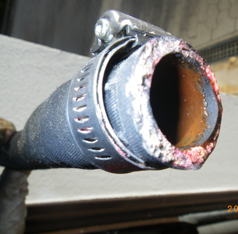 Das ist kein weicher Schmotz, sondern recht fest auf der Länger der Berührung mit dem Abzweig. Rest vom Schlauch ist sauber: