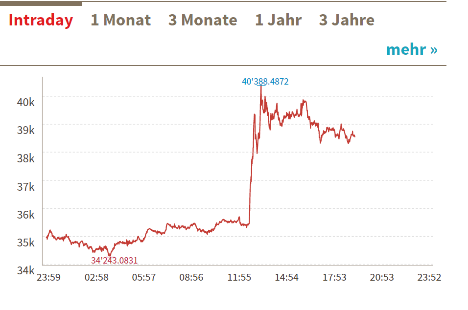 Und bei keiner Blase mit Chrash konnte "man" sich vorstellen, daß er kommt, den Kursziel ist ja, je nach dem bei 60.000 oder über 300T . Da kann ja nichts schiefgehen dann das scheint ja der besondere Wert zu sein, das der Bitcoin immer wieder auf höher Kurse ansteigt.