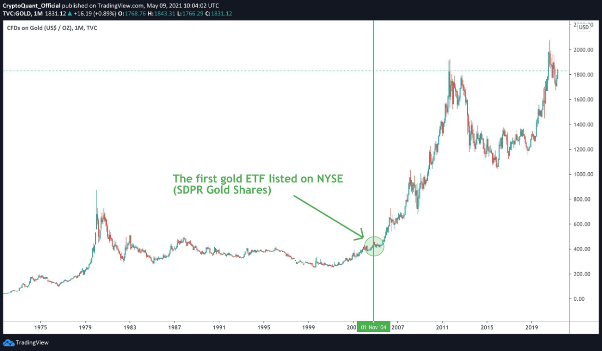 Hier liegt schon wieder ein Fehler. Keiner in Krypto hat auf einen "Geldregen" durch ETF gehofft und das war auch damals nicht so als die ersten Gold ETF etabliert wurden. Die ETF werden langfristig eine Wirkung haben und  ggf eine Mitverantwortung haben die grossen "Pump und Dumps" die wir heute - und sehr wahrscheinlich im nächsten Bullrun noch sehen - abzufedern.