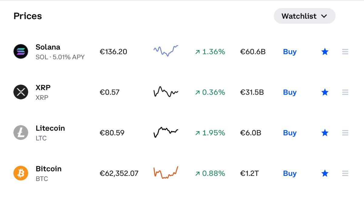 Coinbase ist idiotenfest, lässt sich gut bedienen, Transaktionen sind gut sichtbar. Wird dann noch interessant bei der Steuererklärung, da es ja keinen formalisierten Bericht gibt 🙈
