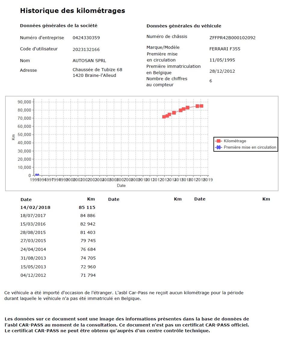 This is last situation of Belgium Car-Pass, with all dates and ‘’kilometres’’  since 2012 when the car coming in our country.