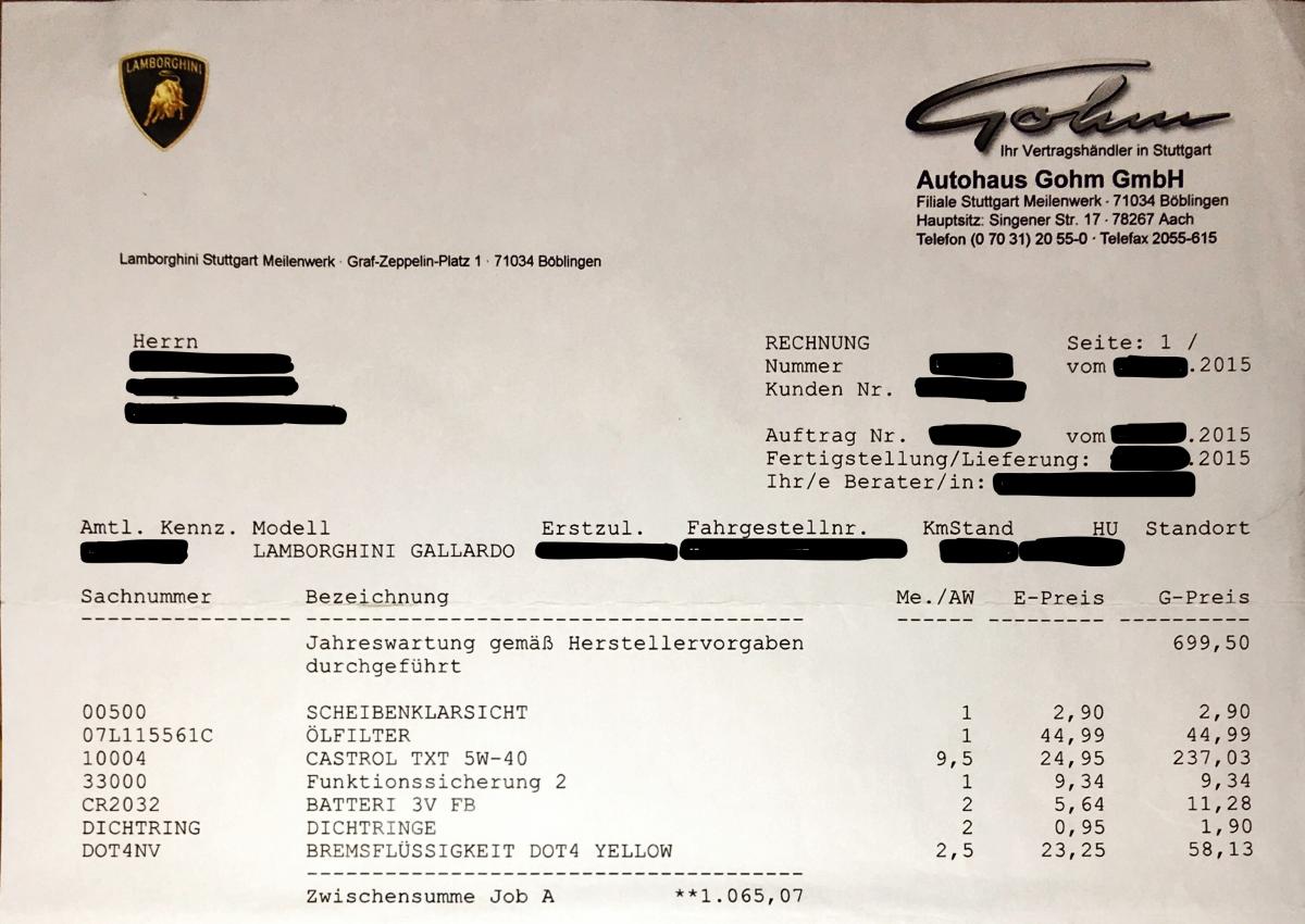 Danke für die Antwort! Ich kenne mich bei Lambo nicht so brutal gut aus. Daher kenne ich die Wartungspläne nicht. Bei einer kleinen Inspektion ging ich aus von Ölwechsel, Durchsicht und vielleicht noch Pollenfilter etc. Da wären 1.800 € schon sehr viel.