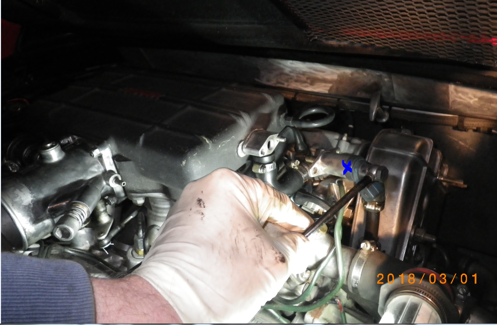 Dann diesen Entlüftungsschlauch. Ist eingerissen, aber nicht bis über die Klemmstelle:
