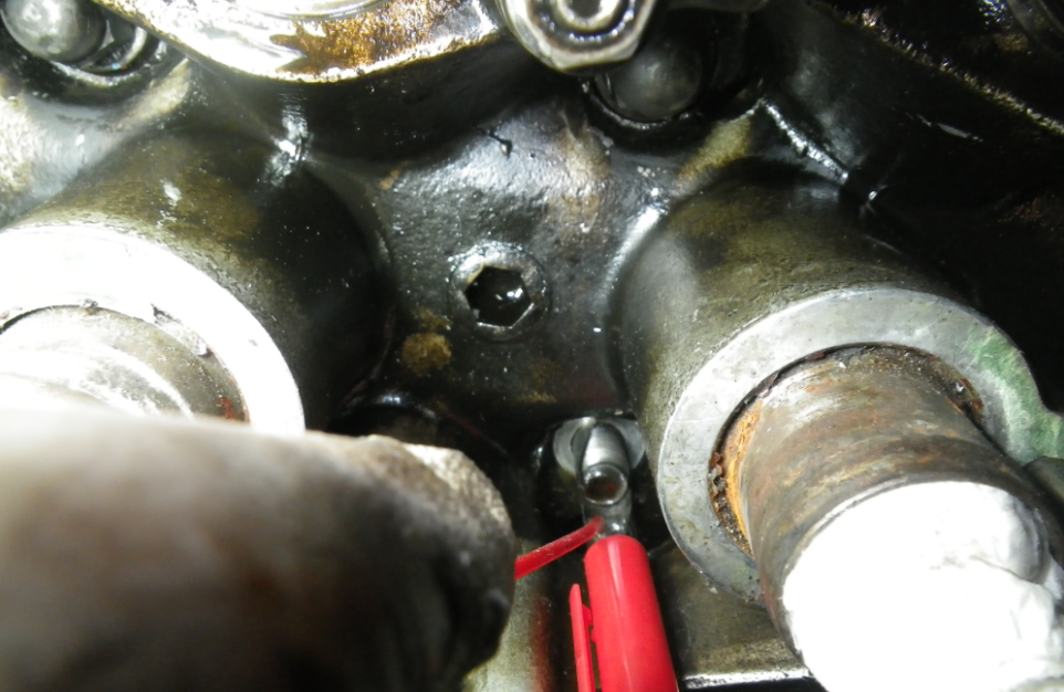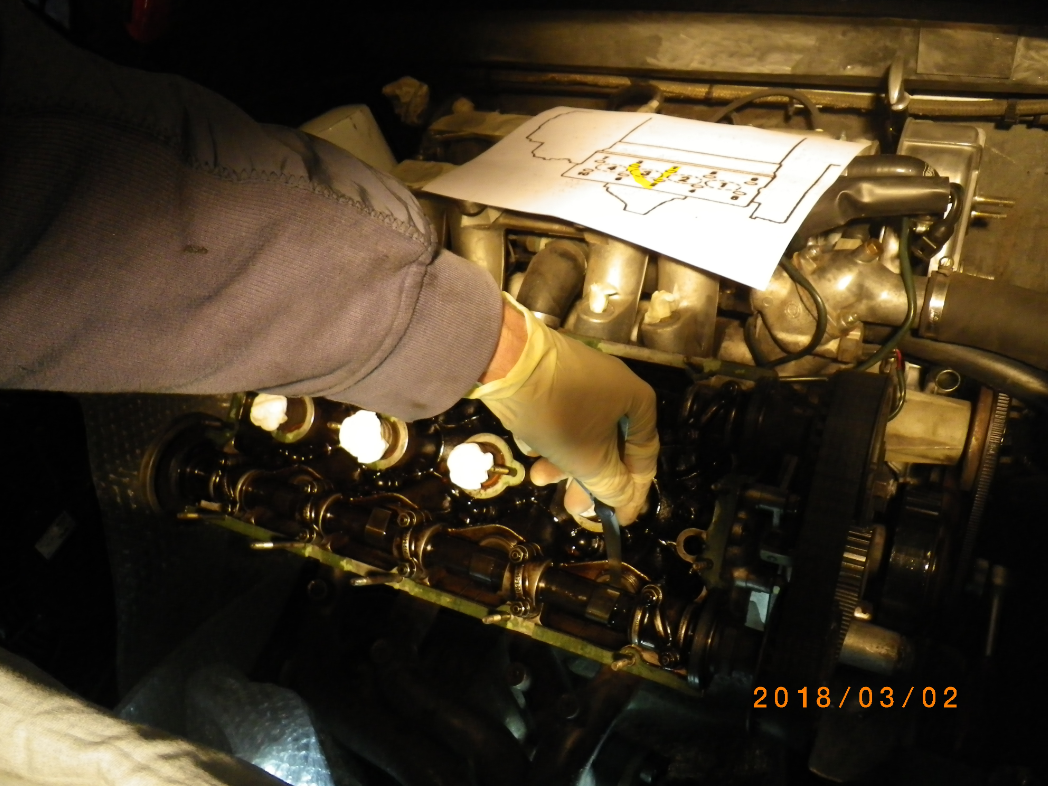• Muttern wieder drauf. Ventildeckel wieder drauf und das gleiche nochmals, aber ohne mich. Ein paarmal nachgießen, wenn wirklich etwas reinläuft. Über Nacht wirken lassen. Morgen gucken.