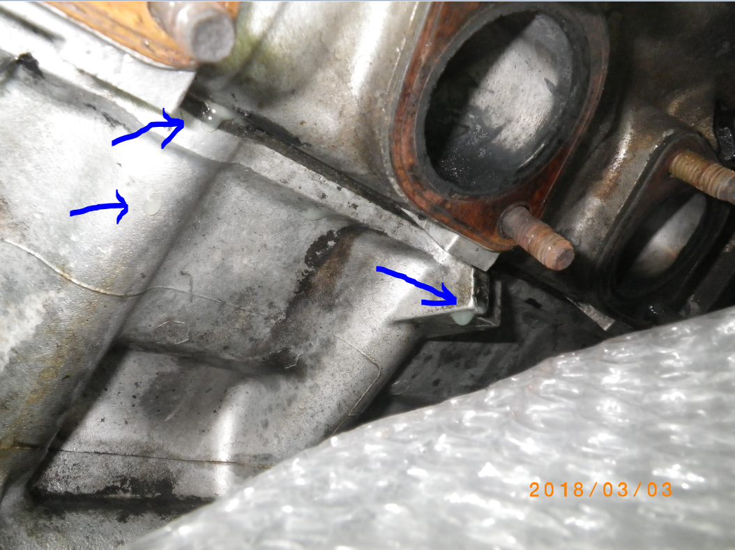 Es kam Kühlwasser an der Kopfdichtung raus. Das sind Kühlwasserreste, es wurde vorher abgelassen.