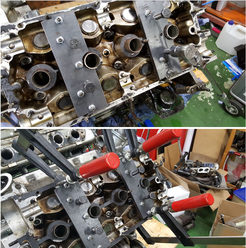So einen ähnlichen Gedanken hatte ich in meiner Not auch schon, aber wieder verworfen, weil ich Angst um die Gewinde im Alukopf hatte. Klar, es verteilt sich, aber dennoch Angst. Das Alu des Kopfes ist ziemlich weich und deshalb darf auch nie nicht auch nur ein bissl über dem angegebenen Drehmoment für die Bolzen der Nockenwellenlager gearbeitet werden. Wenn man einen Schrott-Motor herumliegen hätte, wäre das mal ein interessanter Test :D