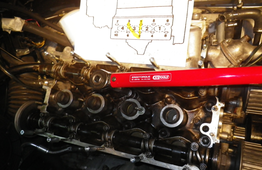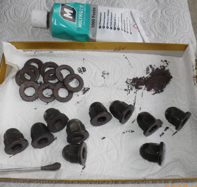 Die Stehbolzen und die Hutmutterngewinde und Scheiben wurden mit Molykote 1000 eingecremt. Steht so nicht im Handbuch. Es ist aber genau für solche Fälle: